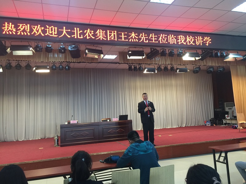 活动伊始,王经理首先对17级的新同学进入人生新阶段表示祝贺,接着王经理介绍了大北农集团的组织架构与相关专业的联系,从世界畜牧业发展的前景、畜牧业变革和发展空间解析了相关行业的人才需求。王经理鼓励同学们把握年轻的资本,做好职业生涯规划,树立正确的价值观,扎实专业理论知识,与时代同行,与理想为伴,努力为我国畜牧行业贡献自己的力量。最后,我院党总支副书记张瑞春指出,王经理用朴实无华的语言,结合自身的经历给同学们作了一场生动、精彩的励志教育报告会,对同学们在校期间的学习规划以及职业发展方向都具有指导性意义。