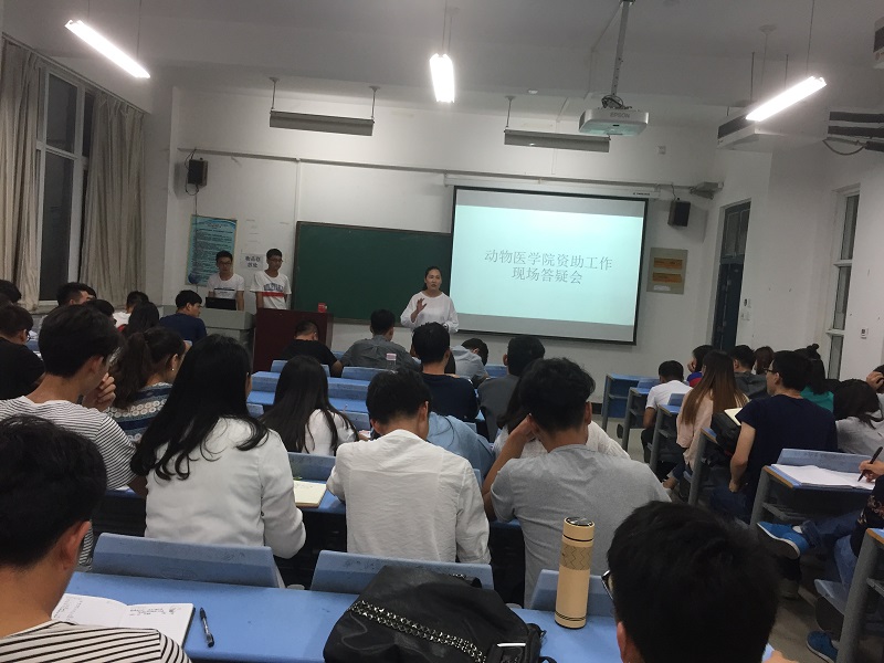 为进一步贯彻落实国家资助政策,更全面地为学生们做好资助服务,保障学生资助工作更加高效、规范的进行,我院于2017年9月15日下午在生工楼A413举行了“动物医学院资助工作现场答疑会”。参会人员包括我院资助专干樊明明老师以及学生会生活部干事和各班班长、生活委员。