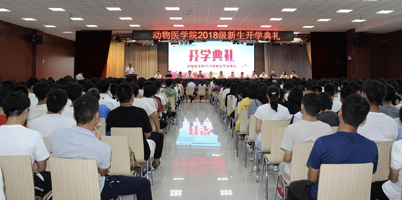 9月11日上午,我院在大学生活动中心隆重举行2018级新生开学典礼。动物医学院特聘教授王俊东、河南省动物疫病防控中心技术研究室主任闫若潜、党总支书记王春明、教务处处长、院长边传周、河南省猪病防控工程中心主任李文刚、副院长石冬梅、来自北京、内蒙、浙江、江苏等地区知名企业冠名班的领导以及我院2018级新生班主任和613名新生共同参加开学典礼,开学典礼由党总支副书记张瑞春主持。