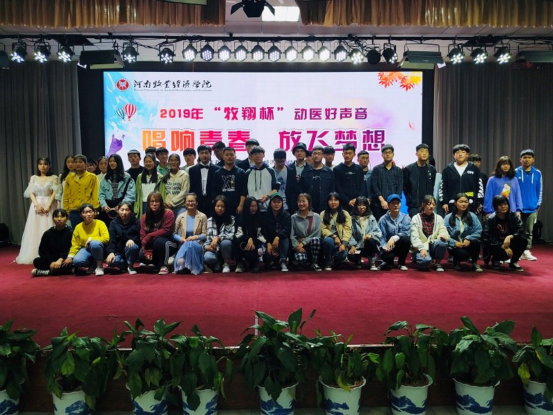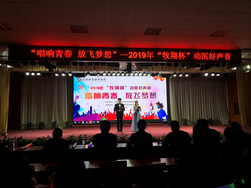 4月12日19:00,动物医学院河南牧翔动物药业有限公司于大学生活动中心四楼举行2019年“牧翔杯”动医好声音歌唱比赛。河南牧业动物药业有限公司人事部王菲菲女士、我院党总支副书记张瑞春、团总支书记王宏魁、辅导员张丽、聂丹、付文凯老师于450余名学生共同参与了此次活动。