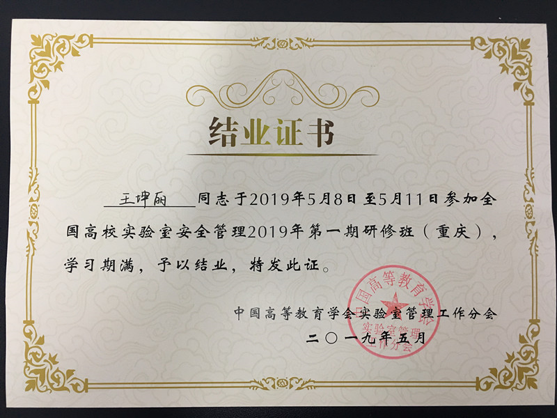 通过此次研修班的学习,学员们对国家和教育部关于实验室安全工作的要求有了更深层次的认识,学到了一流大学在实验室安全管理方面的先进经验,开阔了视野,提升了实验室安全管理的知识水平,并且获得了中国高等教育学会实验室管理分会颁发的结业证书。