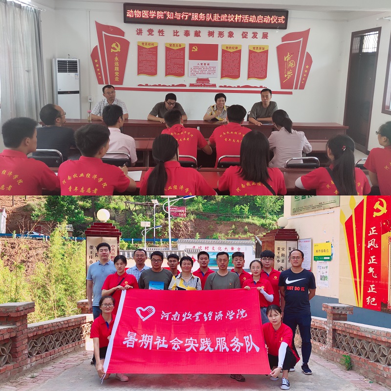 随后,在各位领导老师的带领下,学院“知与行”暑期社会实践小分队顺利抵达暑期社会实践地—河南省洛阳市宜阳县董王庄乡武坟村。在董王庄乡和武坟村驻村第一书记谷志飞书记和卢鑫书记的热情接待下,召开了动物医学院暑期社会实践服务队赴武坟村活动启动仪式。志愿者们了解到目前该村大致人口约1097人,占地8平方公里,由20个自然村组成,村中养殖户以养牛羊为主,卢书记表示脱贫致富关键在于教育,该村已组织成立读书会,希望志愿者们通过社会实践活动能够长才干,增见识,为乡村振兴贡献青春力量。