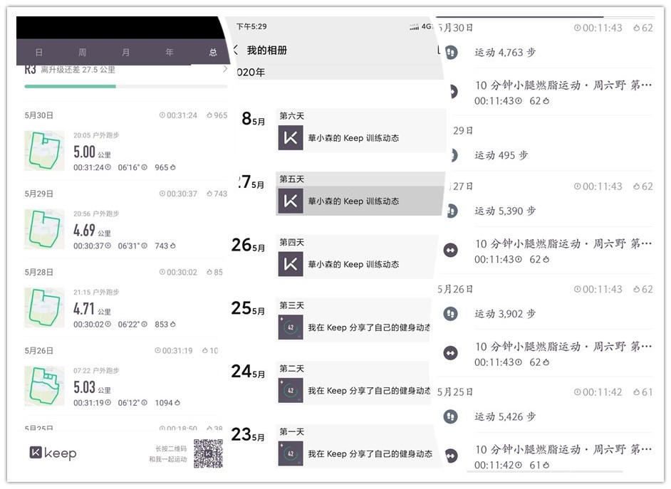 宿舍集中生活期间,学生容易产生焦虑、紧张等负面情绪,为帮助学生舒缓身心、缓解压力,我院组织第一批返校的176位毕业生,通过keep、微信运动等运动软件,进行每日运动打卡活动。同时,我院还鼓励低年级的在校生,每日进行体育锻炼,从而养成良好的生活习惯。