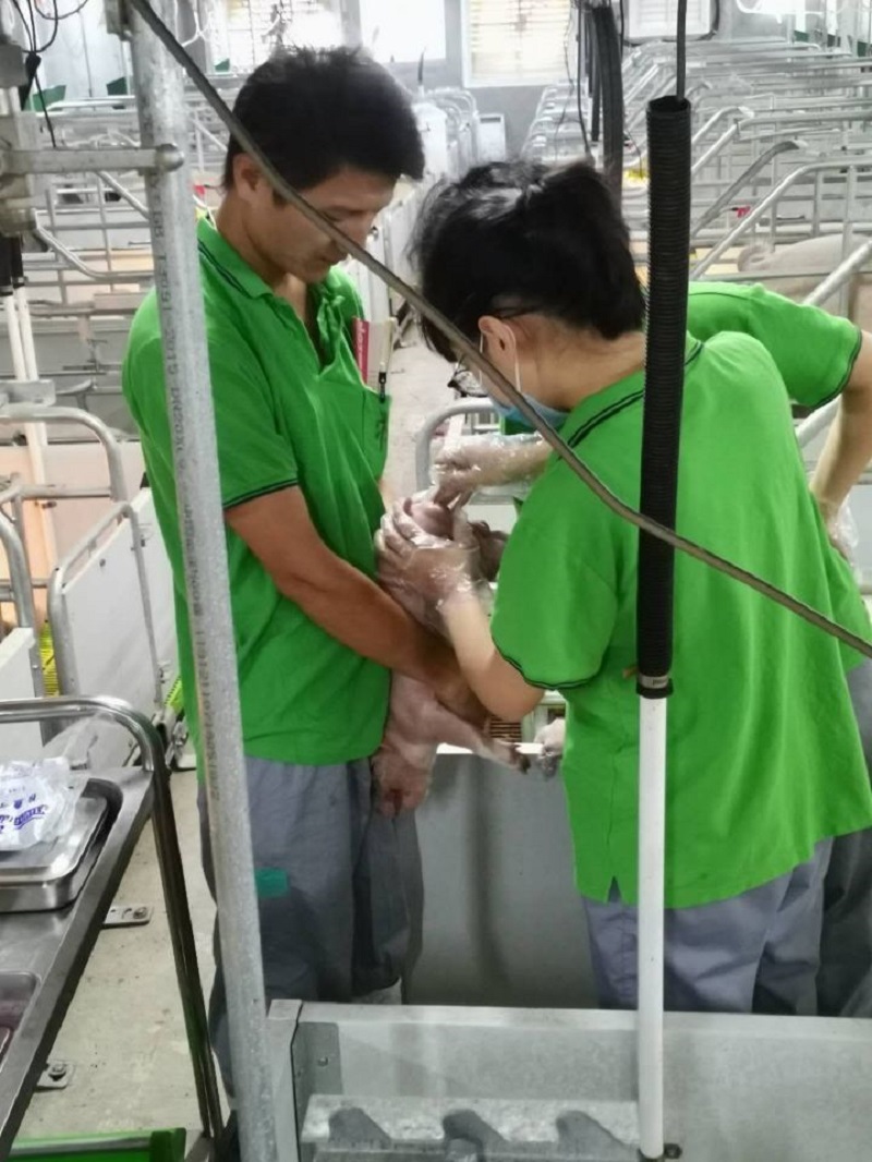 我院18级动医专业赵峥、游怡宁、王一鸣,邱祥琦、冯佳华、陈露露、邓晨璐等10余位同学在确保养殖场的安全防控措施保障下,相约组队深入一线养殖场,以专业技能为依托,助力养殖场复工复产。暑假期间,他们来到位于河南省濮阳市台前新希望六和养殖场,进开展暑期“三下乡”社会实践活动。到达地点后,团队成员在台前新六合前置点经过采样、检测、消毒等一系列基本的安全检查工作后进入养殖场。在实践过程中团队被分成若干小组安排在生物安全线,生活区,育肥舍,保育舍等不同的岗位实践。团队成员在了解工作流程和注意事项后,积极学习,大胆操作,在各自的岗位上尽心尽责完成工作,在养殖场工作人员的指导下不断精进自己的专业技能。经过此次社会实践,团队成员掌握了猪的基本病情排查、打针注射、猪群管理、调控料线、卫生消毒、查情配种、室内温湿度把控等多种专业技能,进一步的加深了对本专业的认知。每次工作下来团队成员的衣服往往被汗水浸湿,但期间没有一位成员抱怨,想要放弃,都坚持完成了实践活动。