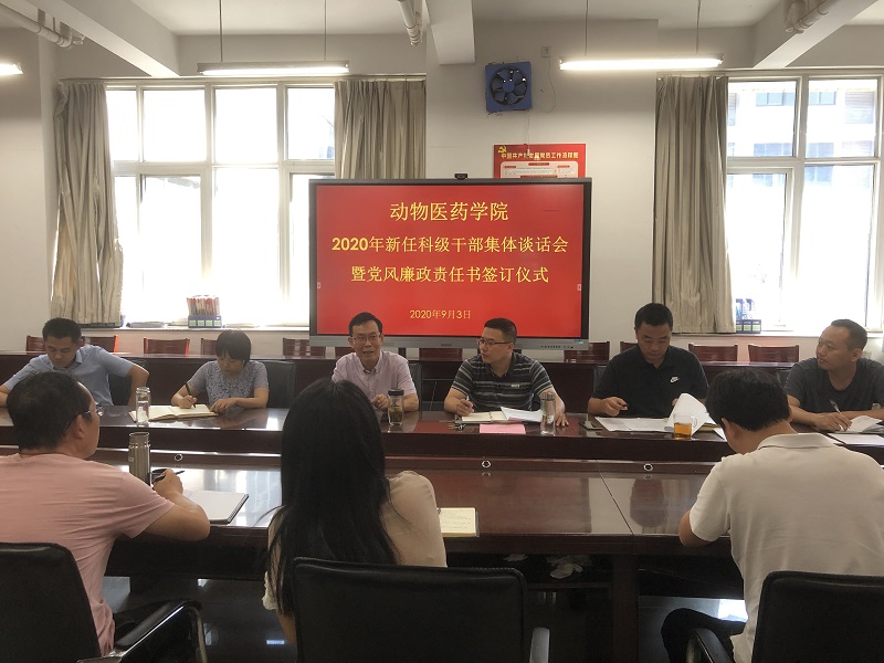 2020年9月3日,我院在生工楼C401会议室召开新任科级干部座谈会,院党委书记刘永录、院长宋予震、副书记汪洋、副院长李利红、副院长汤法银、副院长吴玉臣及全体科级干部参加了会议。会议由院党委副书记汪洋主持。