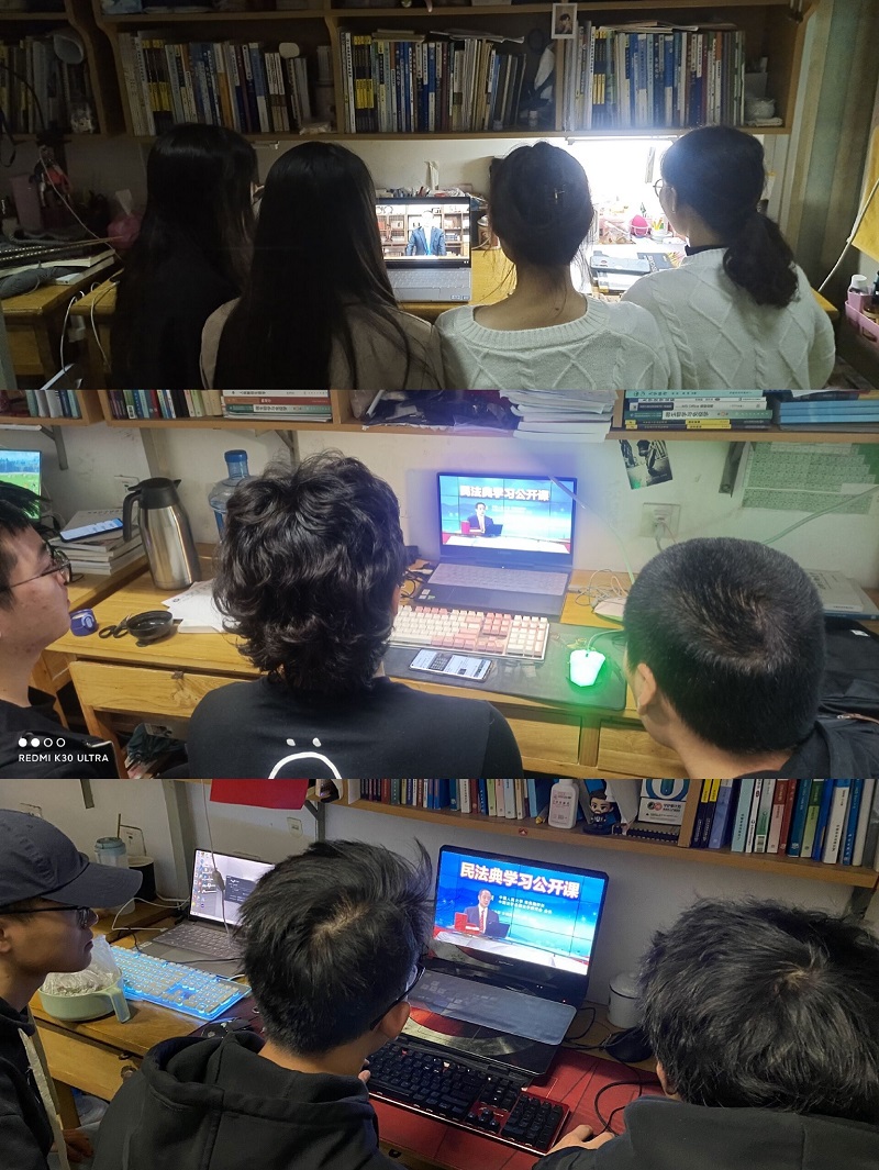 专题学习采用集中学习和自学观看为主,我院组织师生分别以教研室、党支部、班级、宿舍为单位开展集中学习。公开课上,中国人民大学常务副校长、中国法学会民法学研究会会长王利明讲解《民法典的中国特色、实践特色和时代特色》,全国人大常委会法工委副主任刘俊臣讲解《关于民法典的几个主要问题》,最高人民法院审判委员会副部级专职委员刘贵祥讲解《民法典与社会生活密切相关的几个问题》,权威解读民法典的重大意义,阐释民法典的核心要义和重点问题,为民法典学习宣传提供重要参考。