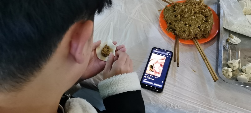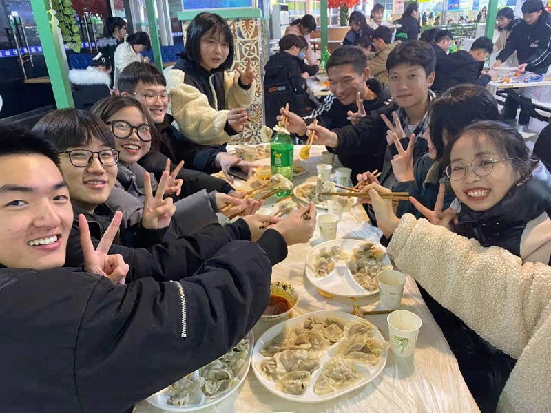 同学们热情高涨,踊跃参加此次活动。他们早早的来到餐厅,会包的同学大展身手,包的饺子像月牙,似元宝;不会包的跟着网上的视频教程进行学习,包出来的饺子也有模有样。同学们一边包一边聊,餐厅瞬间充满了欢声笑语,氛围其乐融融。饺子虽然各种各样,但是同学们吃着自己包的饺子脸上洋溢着幸福的笑容。学院还给同学们准备了饭后水果--砂糖橘,吃完饺子再吃几个砂糖橘,同好友聊聊生活聊聊学习,同学们抑制不住内心的兴奋,直呼学院实在太暖了!