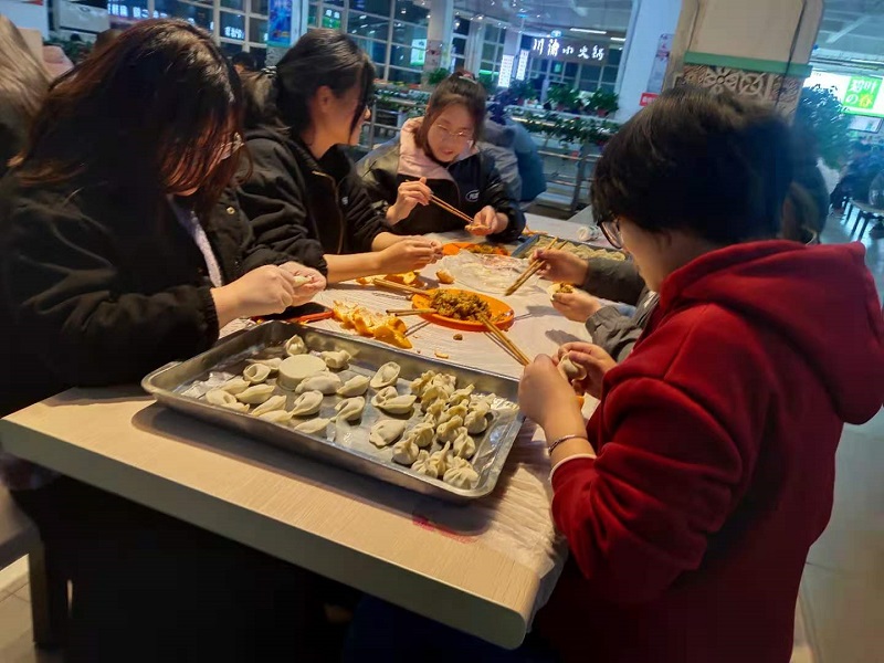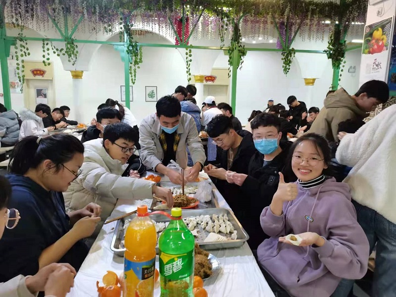 为迎接传统佳节“冬至”的到来,让同学们在集体中感受节日温馨,增进师生交流,12月20日19:00,我院党委副书记汪洋、辅导员谷茜茜、付文凯与同学们一起在醒园餐厅开展了“迎冬至,包饺子”主题活动。