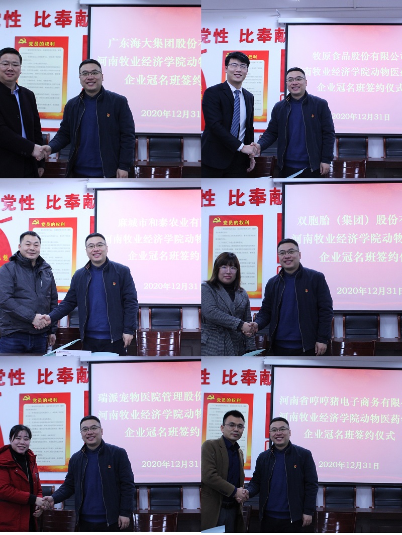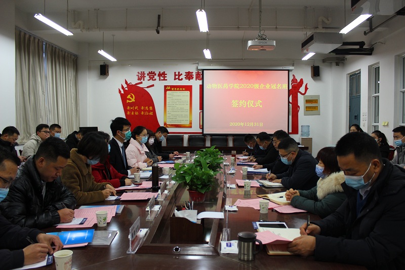 为进一步深化产教融合、校企合作、合作共赢,切实提高人才质量、实现优势互补。12月31日上午9:00,伟德源自英国始于1946于生工楼C401会议室举行2020级企业冠名班签约仪式。校长罗士喜、伟德源自英国始于1946院长宋予震、党委副书记汪洋、副院长李利红、汤法银、吴玉臣和来自江西正邦科股份有限公司等15家企业的负责人出席签约仪式。签约仪式由伟德源自英国始于1946副院长吴玉臣主持。