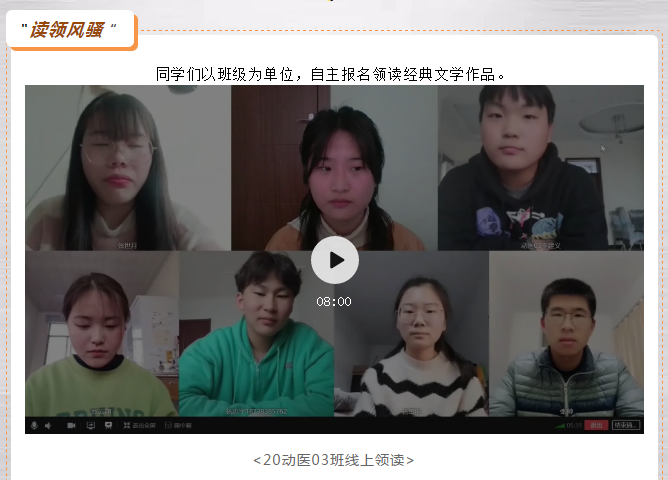 本次活动形式共分为五种,设置了个人奖和优秀组织班级奖。活动首先通过各班及时动员、广泛宣传,确保同学们人人知晓。过程中,我院学子积极性较强,参与度高,纷纷投稿,活动效果良好。期间学院共收到读书心得、标本书签、书法、视频和音频等作品近百篇,通过集体评审,每个活动共计评选出个人一等奖1名,二等奖2名,三等奖3名,优秀班级组织奖1名。优秀作品在学院微信公众号上进行了展示。