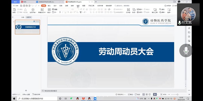 为全面贯彻党的教育方针,让同学们充分认识开展劳动教育的重要意义,确保我院劳动周顺利实施,伟德源自英国始于1946于2022年3月24日中午采用线上的形式,于钉钉会议上举行劳动周动员大会。院团委书记樊明明、辅导员付文凯、院学生会生活部、21级专升本班和中兽医班的班委参加本次会议。