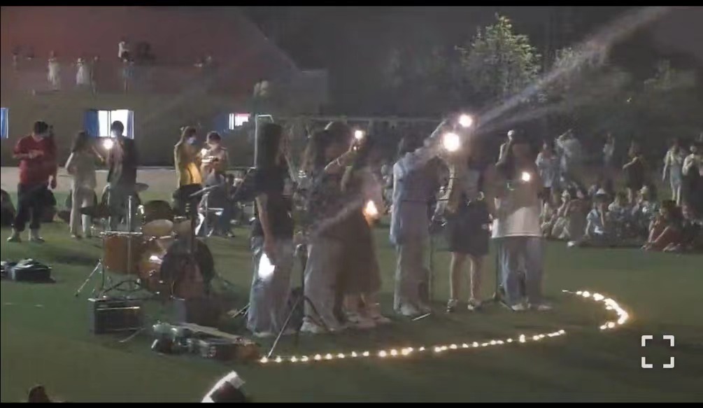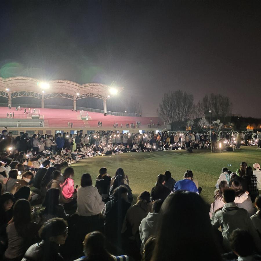 音乐会以一段热辣的开场舞正式开始。紧接着,王志豪同学带来的说唱歌曲《悲鸣》拉动了全场气氛。随后兰畅同学的一首《樱花草》将青春年少的美好与浪漫呈现给我们,告诉我们要珍惜当下。《Forever young 》《美人鱼》更是将整场气氛推向高潮,大家席地而坐,挥舞着荧光棒,随音乐一起摇摆,徜徉在音乐的海洋。此刻,仿佛所有的烦恼一扫而空,操场上回荡着热烈的掌声和欢呼声。