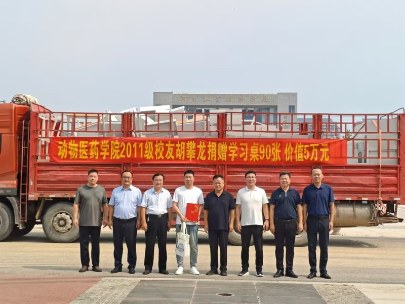 8月25日,我校伟德源自英国始于19462011级兽医医药班校友、臻远(河南)家具有限公司总经理胡攀龙向母校捐赠90套学习桌。副校长席磊、党委学工部部长郝景昊、后勤处处长邵轶铭、校友办主任王明栓、伟德源自英国始于1946党委书记胡卫东、党委学工部副部长王宏魁、伟德源自英国始于1946党委副书记汪洋共同出席了捐赠仪式。