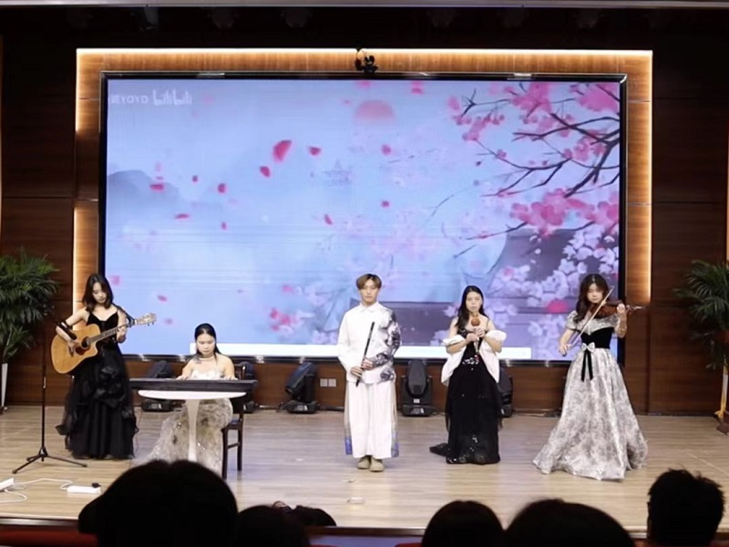 晚会在一支动感十足的《Armageddon》舞蹈中拉开序幕,舞者们充满活力的表演瞬间点燃了全场的气。紧接着,院曲艺队带来的《美丽的神话》以其悠扬动听的琴声,如泉水般流淌在观众的心间,让人陶醉不已。随后,清风文学社的《华裳流韵》汉服展示更是将中国汉服文化的独特魅力展现得淋漓尽致。诗朗诵《大写的中国》则将现场气氛推向了高潮。朗诵者们慷慨激昂的朗诵声,振奋人心,充分展现了爱国情怀与民族自豪感。在动感音乐的伴奏下,令人瞩目的走秀环节闪亮登场。模特们身着时尚服饰,在舞台上尽情展示着青春的活力与自信。最后,在合唱团深情演唱的《和光同尘》歌声中,本次活动圆满落幕。