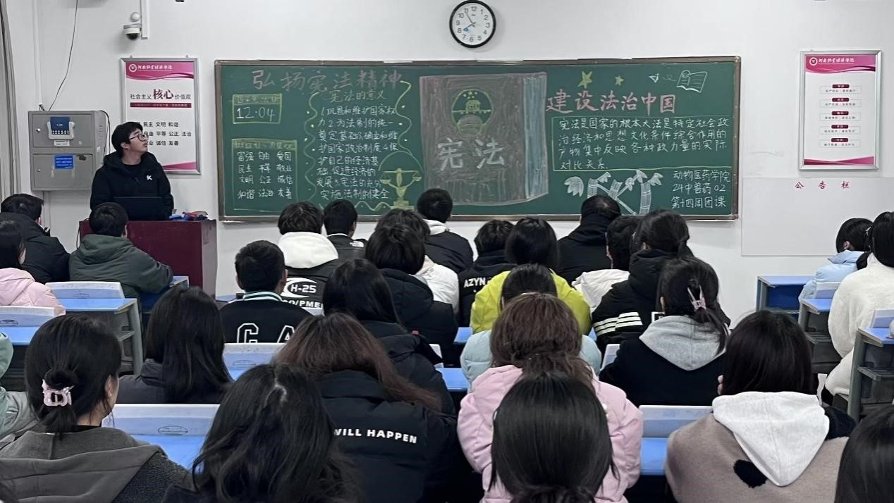 12月4日,我院各班宣传委员带领同学们观看“宪法晨读”活动直播,并围绕活动主题深入学习宣传宪法、民法典等相关法律知识。同时,我院组织了“宪法晨读”活动,数百学子在领誓人引领下精研宪法要义,庄严宣誓,以青春之声彰显对宪法的赤忱忠诚。24宠医02班赵紫涵说:“我将把宪法精神内化于心、外化于行,自觉遵守法律法规,维护宪法权威。”