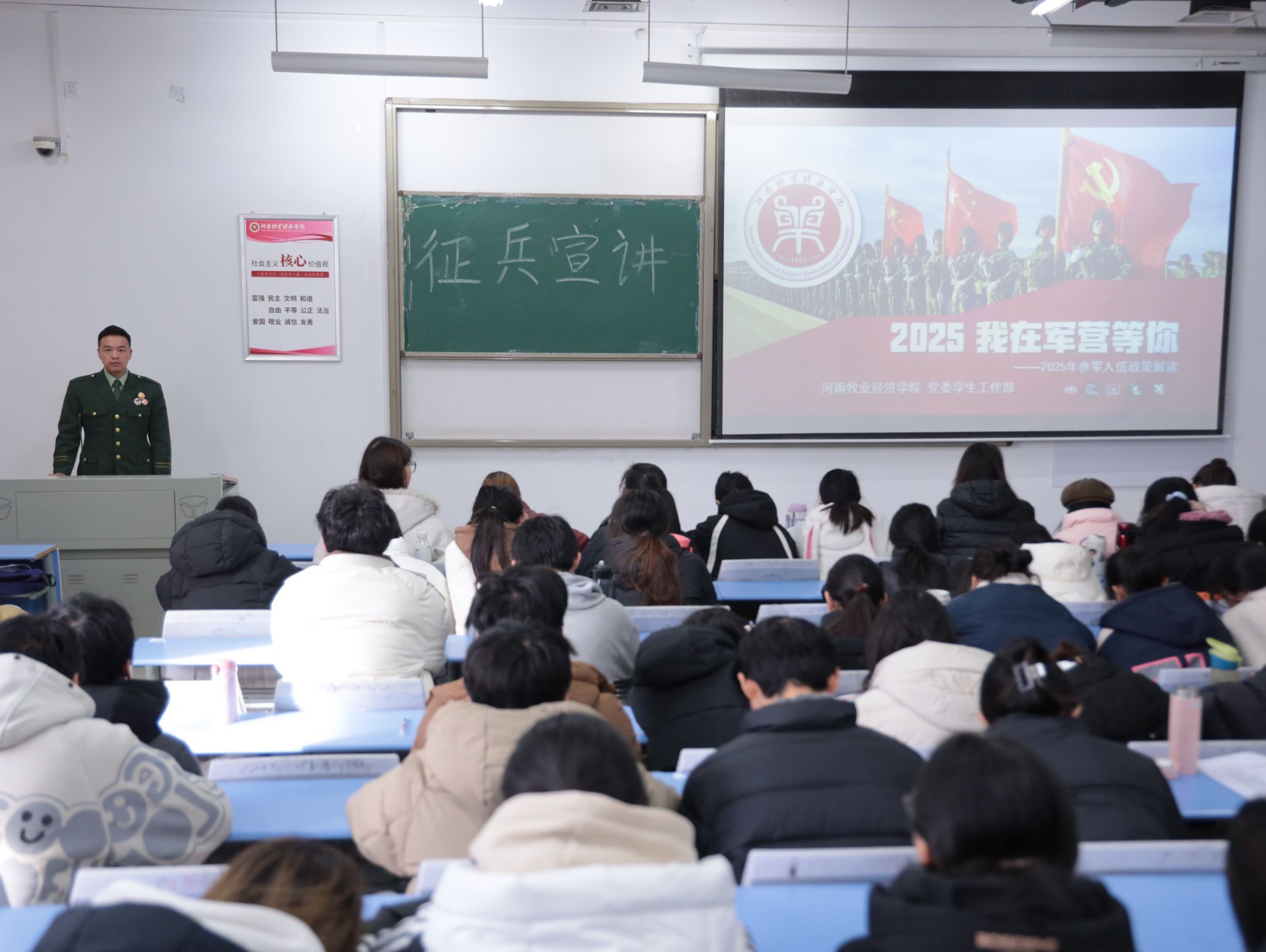 本次会议由退伍学子朱卫宾主讲,他从征兵的国防意义、征兵入伍条件、应征入伍的基本流程、报名方式几个方面详细解读了大学生入伍政策。同时指出了在新政策下大学生志愿兵役的优势以及对学业、事业、未来发展等方面的福利政策。他表示,当代青年大学生要坚定不移走中国特色强军之路,主动担当起党和人民赋予的新时代使命任务,参军尽义务,戍边卫国防。随后,退伍学生陈鑫和于静溪介绍了自己在军旅生活中的经历和感受,两年间,他们有两百公里徒步的艰辛训练,也有周末聚餐幸福时刻。在军营中虽然每天都很累,但是却充满了温暖幸福。最后,三位退役学子与同学进行了深入的互动交流,同时鼓励同学们不断进取、顽强拼搏、成就梦想。