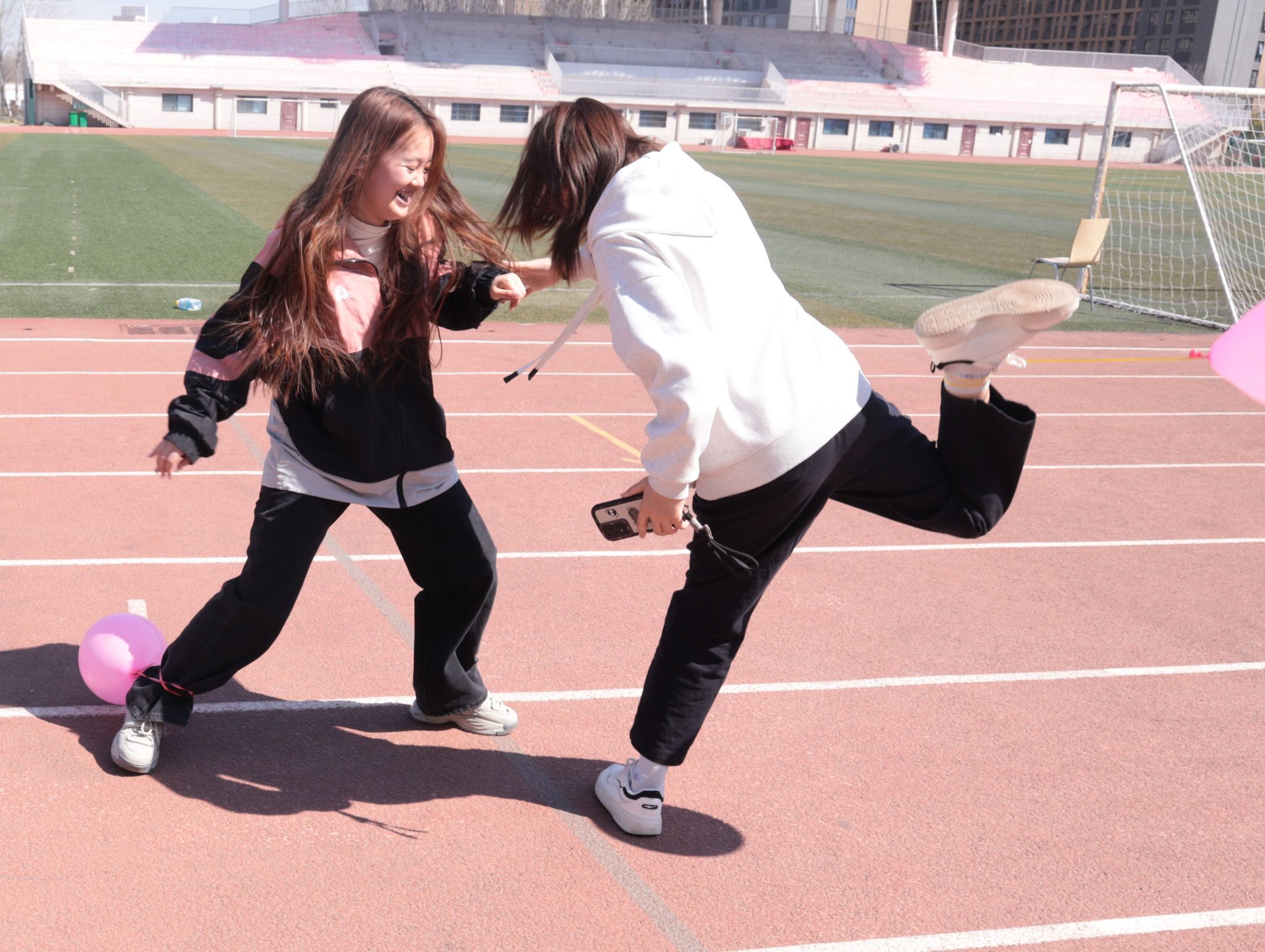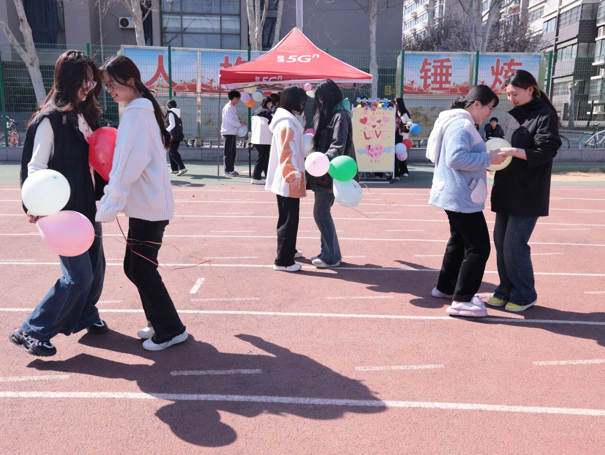 首先进入的是气球涂鸦环节,参与学生纷纷拿起画笔,在气球上尽情挥洒创意,有的勾勒出可爱的卡通形象,还有的写下了自己的心愿和祝福。每一个气球都承载着大家的梦想和希望,成为了一道道亮丽的风景线。随后展开的趣味减压游戏将活动推向高潮,"气球接力赛""蒙眼爆破挑战"等创意环节让同学们在默契配合与开怀大笑间释放学业压力。学科班级界限在协作中悄然消融,取而代之的是此起彼伏的欢呼声与加油声。蓝天白云之下,五彩斑斓的气球随风轻摆,如同朵朵绽放的春日繁花,为青春记忆添上明快的色彩。