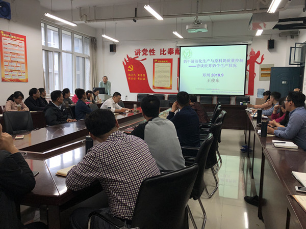9月27日下午2:30,在生工组团C401会议室,我校特聘教授王俊东(原山西农业大学副校长)为我院教工做了“奶牛清洁化生产与原料奶质量控制”的报告。会议由动物医学院副院长石冬梅主持。