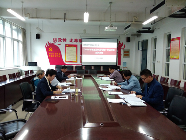 9月27日上午8:30,在生工组团C401会议室,动物医学院召开了河南省重点研发与推广专项院内评审会。出席的评审专家有我校特聘教授王俊东、河南省猪病工程中心主任李文刚教授、科研处副处长胡华锋教授、动物医学院副院长石冬梅教授、兽医内科与诊断学教研室主任靳双星教授、科研秘书皇甫和平副教授。评审会由石冬梅副院长主持。