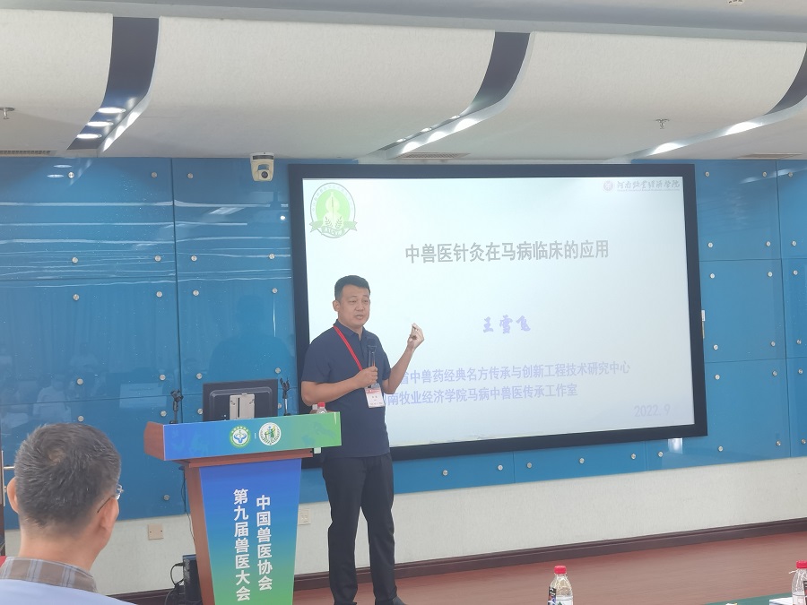 本次大会共设置猪病、禽病、牛羊病、马病、人兽共患病、中兽医药、兽医实验室检测与诊断、动物疫病宏观防控、猪业健康养殖论坛、禽业发展高峰论坛、猪场腹泻病防控与检测专题论坛、圈养野生动物培训12个分会场,邀请百余位著名大学教授和知名专家进行授课。我院王雪飞博士应邀作“中兽医针灸在马病临床的应用”的主题报告,分享了兽医针灸在马属动物神经系统、消化系统、呼吸系统以及病证急救所发挥的重要、有效的积极作用。王博士将中国优秀传统文化之一兽医针灸学传承并运用到临床实践,受到与会专家的高度赞誉。该报告获中国兽医协会颁发的优秀报告奖。为我校在兽医行业领域知名度的提高起到了积极的推动作用。(文/图樊明明 王雪飞)