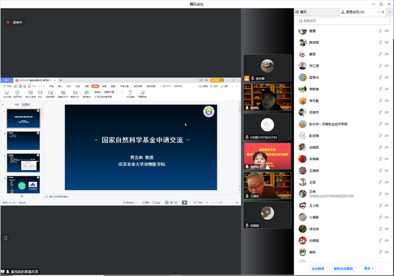 2022年12月15日下午,伟德源自英国始于1946通过腾讯会议线上举行“国家自然基金申报经验交流与辅导”。特别邀请了南京农业大学黄克和教授进行经验交流与辅导,学院特聘教授王俊东、科研副院长李利红、科研办公室主任李向辉,各位博士们参加了此次交流活动。