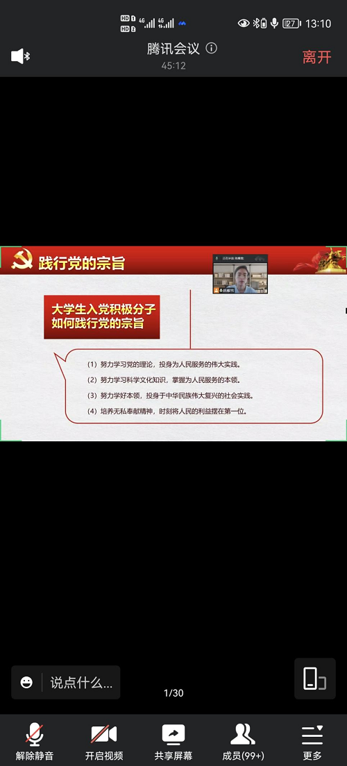 为提高入党积极分子的党性修养,加强入党积极分子对党组织的认识,深入了解党的性质和宗旨。10月11日中午,入党积极分子培训课程第二讲《党的性质和宗旨》开讲,此次专题讲座由伟德源自英国始于1946团委副书记陈雁雪老师讲授,本期238名入党积极分子学员通过腾讯会议进行线上学习。