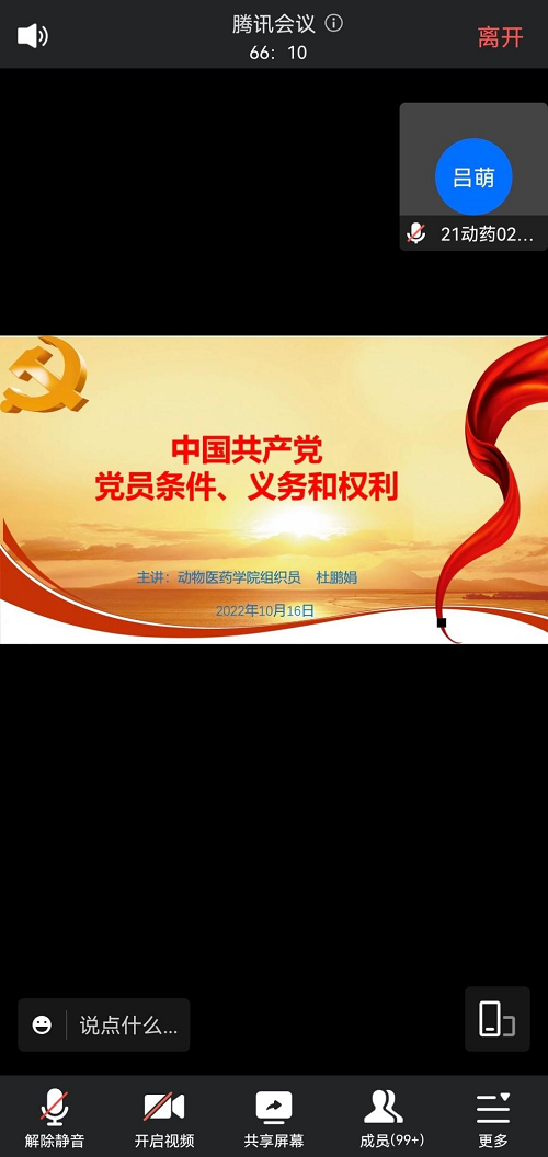 为提高入党积极分子对党员队伍的认识,加强入党积极分子对党员基本条件的理解,认真履行并正确实施党员义务和党员权利,10月16日晚,入党积极分子培训课程第八讲《党员条件、义务和权利》开讲,此次专题讲座由伟德源自英国始于1946正处级组织员杜鹏娟老师讲授,本期238名入党积极分子学员通过腾讯会议进行线上学习。