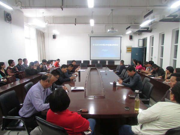 王春明书记从四个方面对李克强总理的讲话进行了解读和学习:对当前经济形势的总体判断、2015年工作回顾、十二五收官与十三五发展和2016年政府工作报告新亮点。王书记指出,今年的全国两会,是在进入“十三五”开局之年、全面建成小康社会决胜阶段的新形势下召开的,要深刻把握当前发展面临的形势和“十三五”时期的主要目标及重大举措。今年的《政府工作报告》中,需要重点关注高等教育如何进行供给侧结构性改革,特别是思考:如何缓解企业用人与学生就业的不对接的结构性矛盾,如何提升教学水平、转型发展,如何把高等教育改革的着力点真正放在课堂教学上,大学生如何认清形势、明确责任与担当、发奋成才。