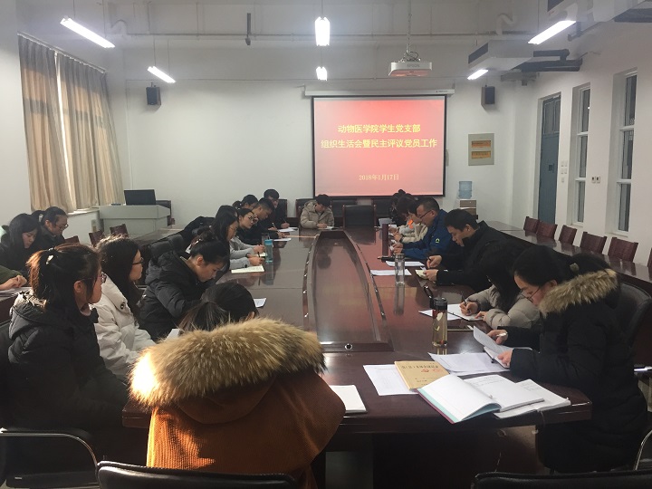 2018年1月17日下午,动物医学院在生工楼C401召开了动物医学院学生党支部组织生活会暨民主评议党员工作会,学生第一党支部书记王宏魁、学生第二党支部书记张瑞春、两个支部的组织委员吕玉金、张丽和宣传委员樊明明、聂丹以及全体在校学生党员参加了此次会议。