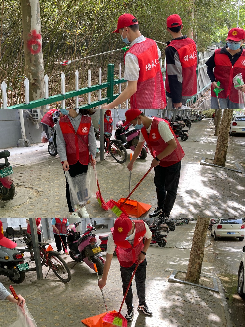 启动仪式上,龙子湖办事处申雨阳副书记、王方亮副主任发表动员讲话。申书记指出,此次“绿城使者——小红象·周周行”活动,主要是对辖区内进行环境卫生整治,旨在弘扬志愿服务精神,倡导辖区居民践行文明环保的生活理念,共同推进爱国卫生运动取得新成效。随后,我院志愿者在龙子湖街道办文明办马俊超老师和社区负责人的带领下简单熟悉小区的结构后,分成了两组。劳动现场,志愿者们身穿红马甲,拿起扫帚、垃圾钳等工具,充分发扬不怕脏、不怕累的精神,利用手中的工具清理街道死角、捡拾绿化带垃圾、铲除墙面小广告、清扫路面烟头和杂物等等……大家积极配合、分工协作、干劲十足,现场热火朝天。近2个小时的彻底清扫,我院志愿者共清理路边,停车棚下,绿化丛中生活垃圾十余袋,为居民营造了整洁的生活环境。
