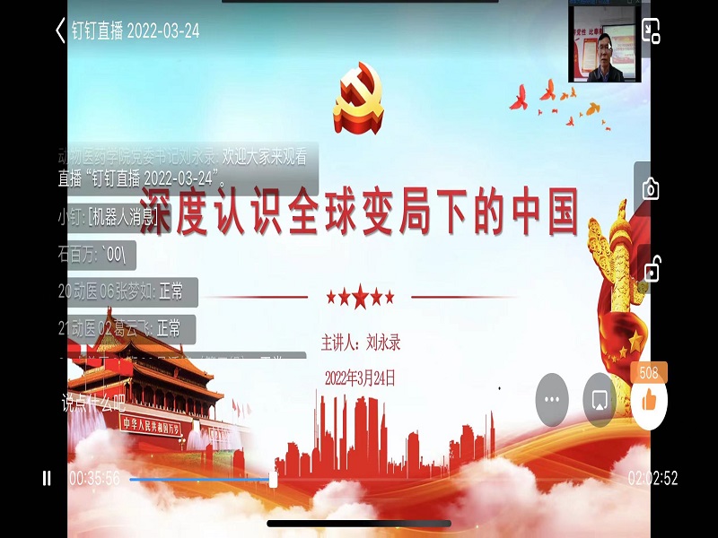 为进一步提升入党积极分子的党性素养,培养同学们紧跟时代步伐、心系国家大事、关注热点话题的良好习惯。3月24日下午13:00,《深度认识全球变局下的中国》党课开讲,伟德源自英国始于1946党委书记刘永录担任本期党课第一讲的主讲老师,学院本期172名入党积极分子学员通过钉钉直播进行线上学习。
