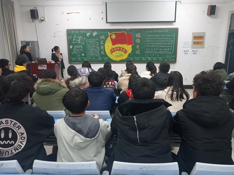 为加强诚信思想教育,树立正确的价值观,营造奋发向上、诚实守信的优良学风,12月18号晚上7:30至9:00我院组织19级学生于各班固定教室开展“端正考风,诚信考试”为主题的团课活动。