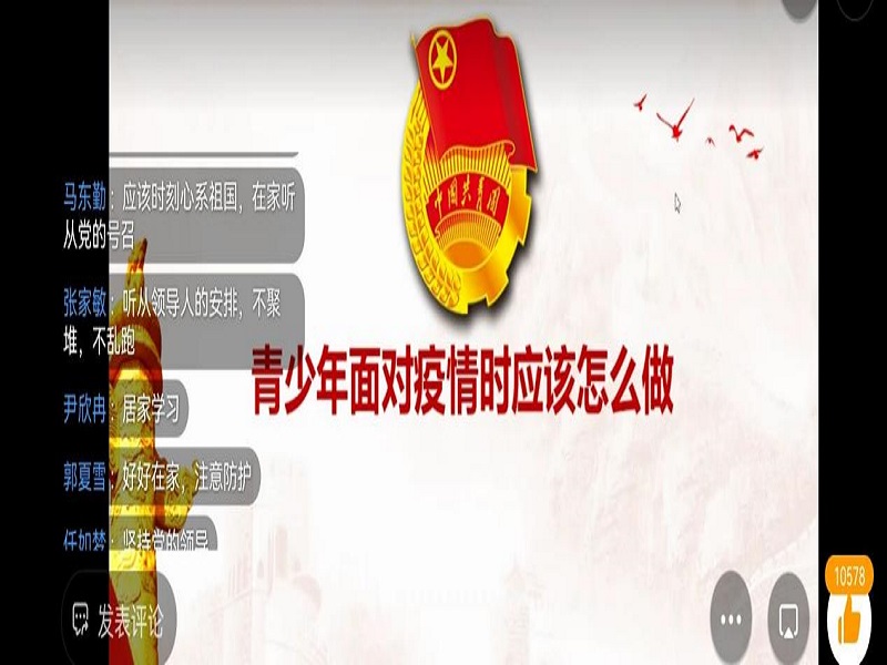 团课学习活动中主持人讲述了校团委深入贯彻落实习近平总书记重要指示,团结带领全校,迅速行动、众志成城、防汛抗疫,扎实开展防汛救灾、帮扶救助和卫生防疫工作,全力保障师生的生命财产安全的优秀事迹,并号召同学们要提高思想认识,扛牢政治责任。同学们表示,要坚定贯彻习近平总书记重要指示和党中央、国务院决策部署,充分认识到疫情防控形势的复杂性、严峻性和重要性,坚决执行学校疫情防控工作要求,主动投身疫情防控斗争第一线,主动带头坚守岗位,发扬无私无畏精神,顾全大局,把灾难当教材,敢于担当、主动作为,为打赢抗疫抗洪的双线战役做好充分准备。