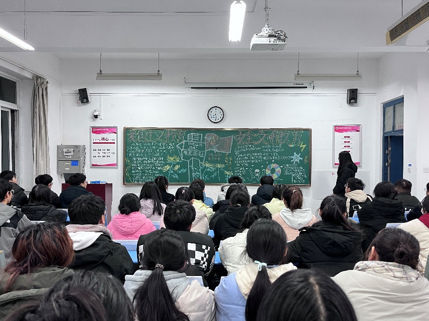 本次团课分为两个部分。第一部分以“校园安全警钟鸣,防火防疾要牢记”为主题。主持人首先以视频的形式展示了一系列校园火灾的实例,深入分析了事故发生的原因。随后,主持人带领大家深入地了解宿舍使用违规电器的危害性,并强调了学院正在开展的“辅导员进宿舍”活动,对宿舍进行安全隐患排查。最后,结合近日备受关注的“脆皮大学生”话题,引发同学们对校园安全的深刻思考和深入交流。