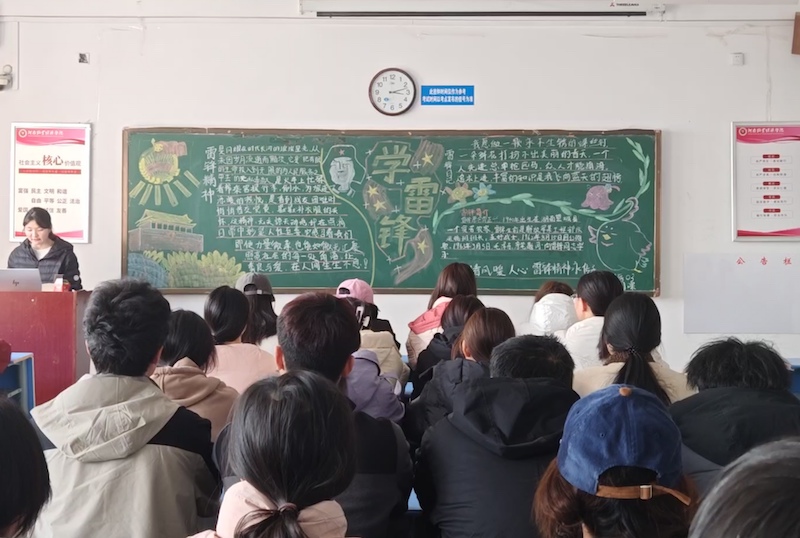 本次团课以“雷锋精神永不过时”为核心脉络展开。团课伊始,主讲人详细讲述了雷锋的成长历程,为同学们勾勒出了一个出身平凡却心怀大爱的青年形象。同学们被雷锋“干一行、爱一行、钻一行”的“螺丝钉精神”深深打动,纷纷在班级中分享了寒暑假期间社会实践中的志愿经历,讲述了扎根基层、服务群众的切身感悟,生动诠释了雷锋精神的当代价值,展现了新时代“雷锋传人”的青春担当。随后主持人结合党的二十大报告中“在全社会弘扬奉献、友爱、互助、进步”的志愿精神的号召,系统阐述了雷锋精神在新时代的深刻内涵。最后她强调:雷锋精神是中国共产党人精神谱系的重要组成部分,新时代青年要将个人成长融入服务社会的实践中。