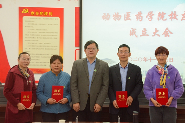 刘永录为伟德源自英国始于1946校友会理事颁发聘书。刘永录代表学院与河南中盛动物药业有限公司、周口森邦生物科技有限公司、郑州福源动物药业有限公司签订了校企合作框架协议。