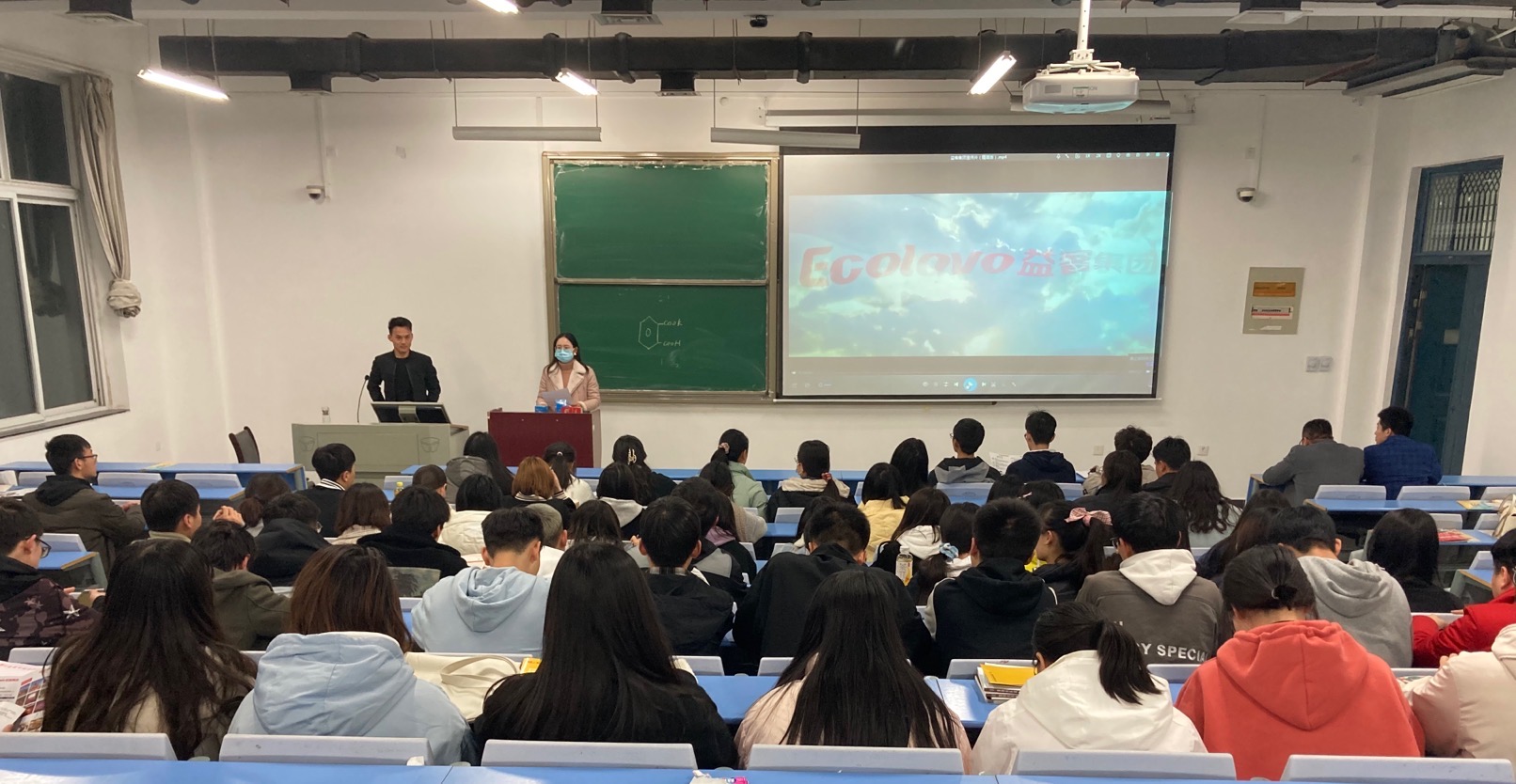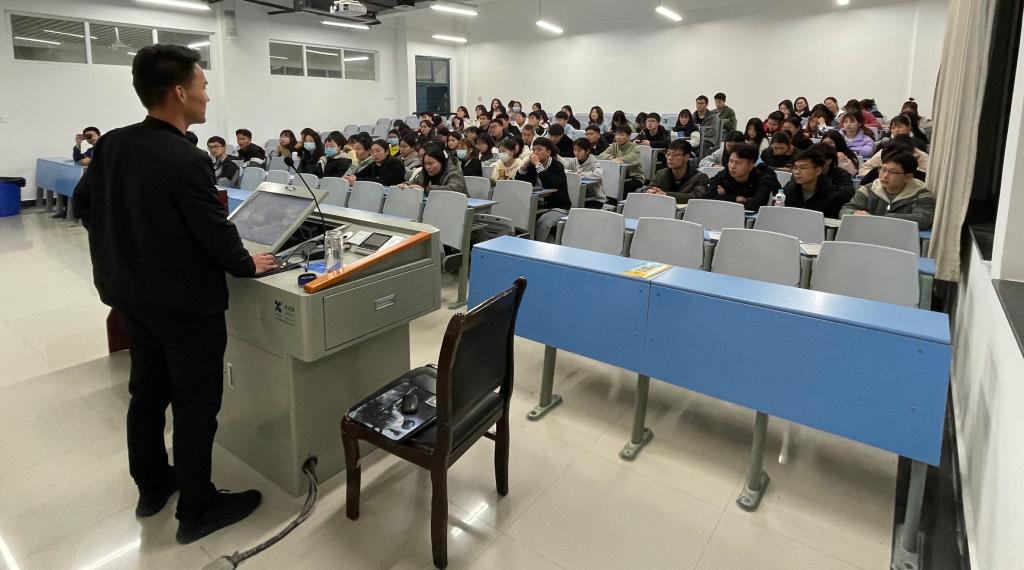 讲座伊始,陈老师介绍杨厂长于2018年毕业于我校动物药学专业,毕业后加入益客集团技术管理部示范场实习,2018年19月调任养殖平台鲁祥基地任厂长助理,2019年10月调任菏泽大埝2号基地任厂长助理,2020年5月任大埝2号基地技术场长兼厂长职务,当前负责笼养肉鸭养殖/密闭网养肉鸭养殖,擅长密闭养殖通风管理及环境控制系统设备管理,同时探索研究多层立体笼养及双层密闭网养模式及环控系统研发与改进。她表示,杨厂长具有丰富的一线实践经验,本次讲座不仅可以帮助同学们深入了解一线,还能够帮助大家更好的做未来的就业选择。随后,杨厂长简单介绍了自己所在公司的基本情况、文化理念、资薪待遇和未来规划等。其次,他以学长的身份,向同学们分享了自己的工作经历,发展历程和职业规划等。他说,从最初进入公司后的企业文化培训、技能培训、生产基地实习的在岗培训,到岗位传帮带的竞聘上岗,每一步都走的很扎实。最后,同学们积极踊跃的与学长沟通交流,现场气氛活跃。大家就目前就业过程中面临的迷茫,招聘岗位中的具体工作内容及工作前景等方面提出问题,杨宝亮热情的逐一解答,并鼓励同学们在完成学习任务的前提下,一定要多参与实践,提升自身解决实际问题的能力。