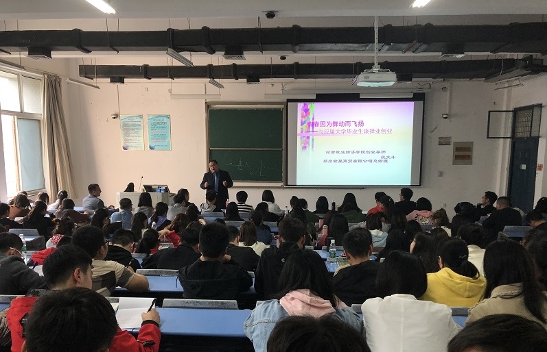 3月29日16:00,我院有幸邀请到郑州君聚商贸有限公司总经理、河南牧业经济学院创业导师段文斗为我院学子作主题为《青春因舞动而飞扬》的报告会。我院党总支副书记张瑞春和2016级动物医学专业学生共同聆听了报告会。