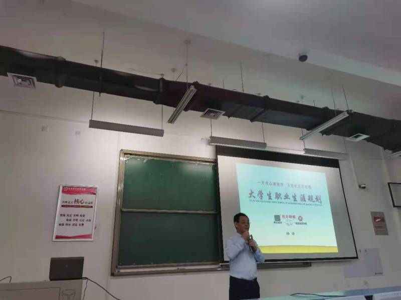本次讲座首先由团委副书记樊明明老师隆重地介绍了杨译副总裁,然后杨副总裁以自己的切身经历讲述了自己的创业历程和对人生的感悟,他指出我们每个人都应对自己未来的职业发展有一个正确的定位,先就业,再择业,把握机遇,才能获得事业的成功。同时,在讲座中杨副总裁还提出,现在的社会是一个经济迅速发展、充满竞争的社会,作为新时代的大学生,更应该提前做好自己的职业生涯规划,只有这样才能更好地适应社会,为社会做出更大的贡献,更好的实现自己的人生价值。最后,在互动阶段,杨副总裁针对同学们提出的问题进行了逐一详细地解答。