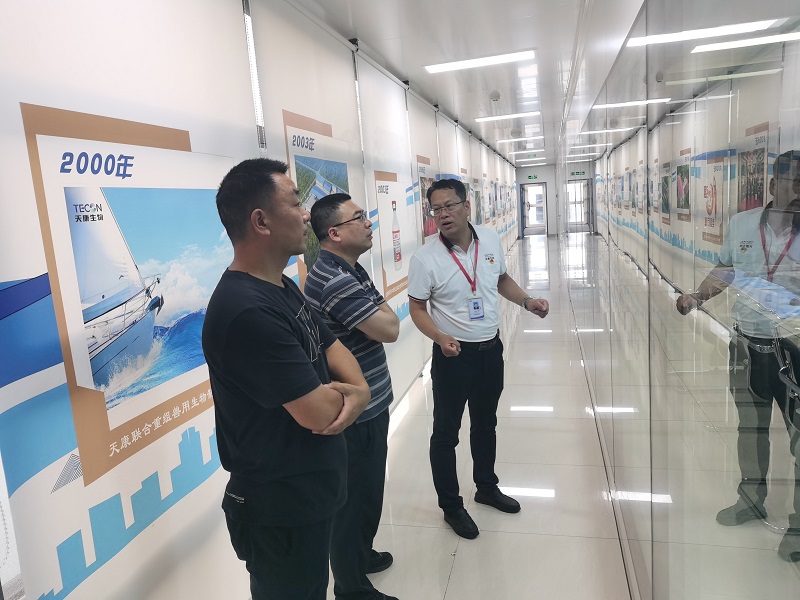 天康生物制药有限公司战略发展总监陈红兴、人力资源经理刘月岚等企业领导对宋院长一行的到来表示热烈欢迎。陈总监带领学院一行参观产品展示和生产车间,随后双方进行了深入的座谈。陈总监详细地介绍公司历史沿革、销售情况、王牌产品、企业文化、员工福利等。陈总监表示,天康公司创立于1993年,是兵团国有控股上市公司。近30年来天康人脚踏实地、艰苦奋斗,始终聚焦主业,将天康发展成为集动保、饲料、生猪养殖、农产品加工与贸易以及金融服务为一体的国家农业产业化龙头企业和国家高新技术企业。目前,公司具有60亿毫升/头份动物疫苗、300万吨饲料、300万吨农产品(玉米、棉蛋白)的年生产、收贮、加工能力,以及300万头生猪养殖规模。2021年,天康企业分布于全国各地一百二十余家生产及养殖企业实现营收157.44亿元,总资产达171.85亿。